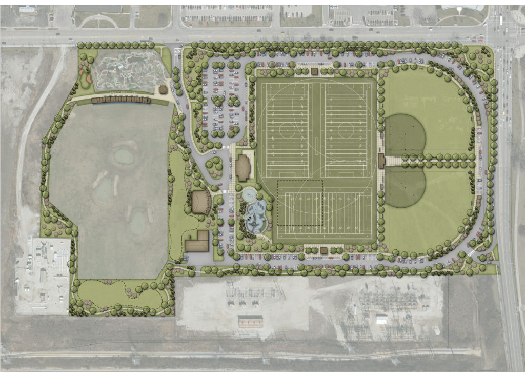 The Lakota Group led a master planning process for this heavily utilized 163-acre, multi-use park facility. The process included small group and one-on-one meetings with over 55 stakeholders representing more than 20 special interest groups. A range of alternative designs was developed to maximize efficiency; improve circulation and wayfinding; address drainage and floodplain issues; and incorporate new uses, sustainable practices, and enhanced aesthetics. The final design includes a large multi-purpose synthetic turf field; a promenade; new playground; enhanced natural turf fields; a covered golf driving range structure; and enhanced landscape planting, including native vegetated native bioswales. The Lakota Group was responsible for developing a master plan as well as preparing construction documents for the park.
